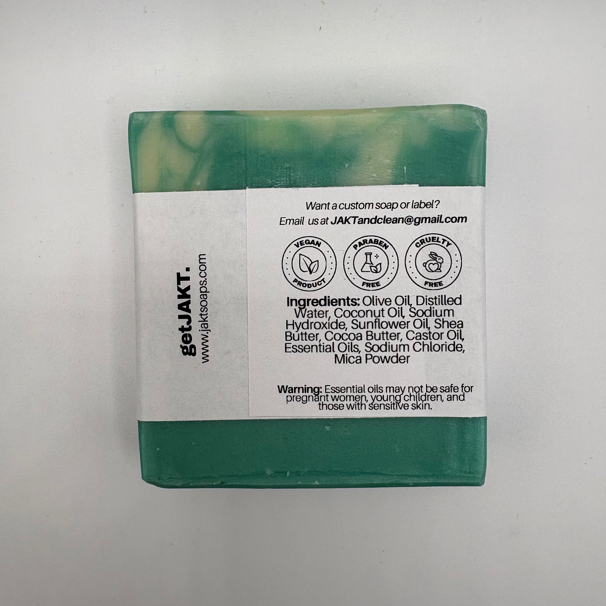 Ingredients: Olive Oil, Distilled Water, Coconut Oil, Sodium Hydroxide, Sunflower Oil, Shea Butter, Cocoa Butter, Castor Oil, Essential Oils, Sodium Chloride, Mica Powder.