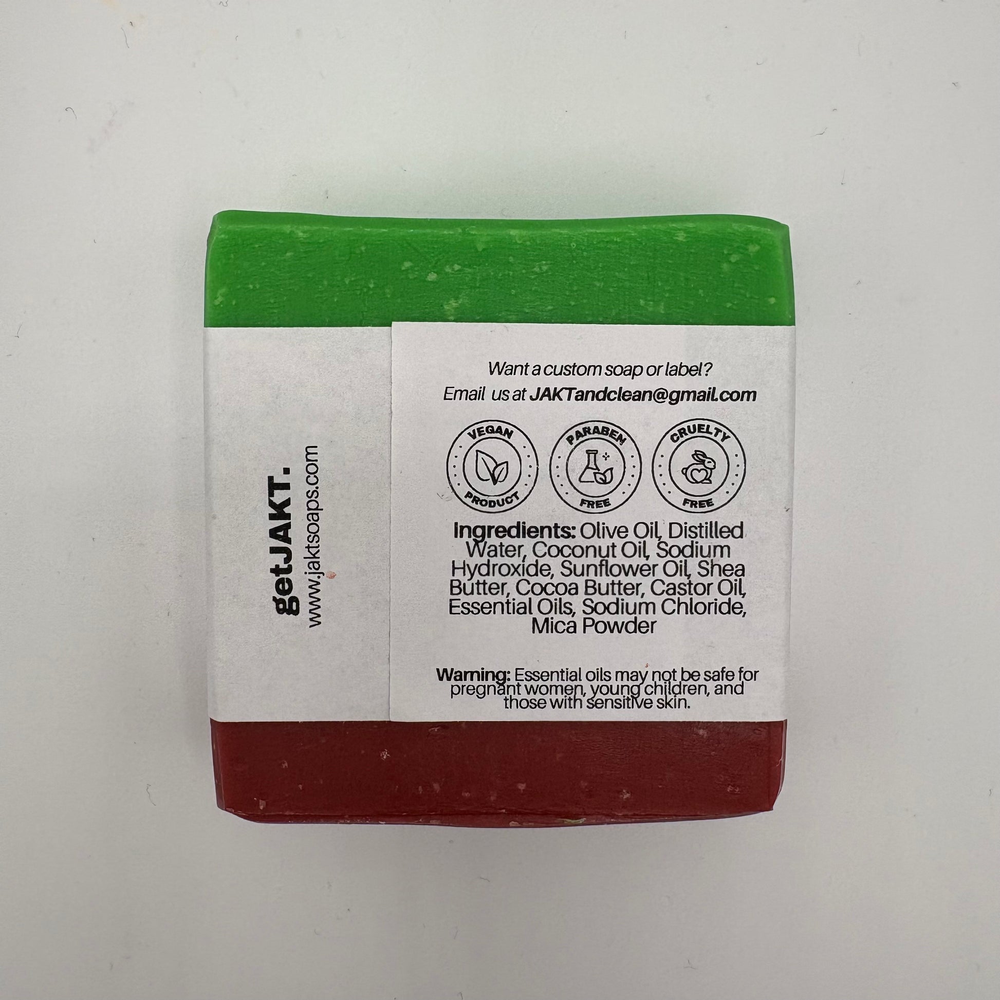 Ingredients: Olive Oil, Distilled Water, Coconut Oil, Sodium Hydroxide, Sunflower Oil, Shea Butter, Cocoa Butter, Castor Oil, Essential Oils, Sodium Chloride, Mica Powder.