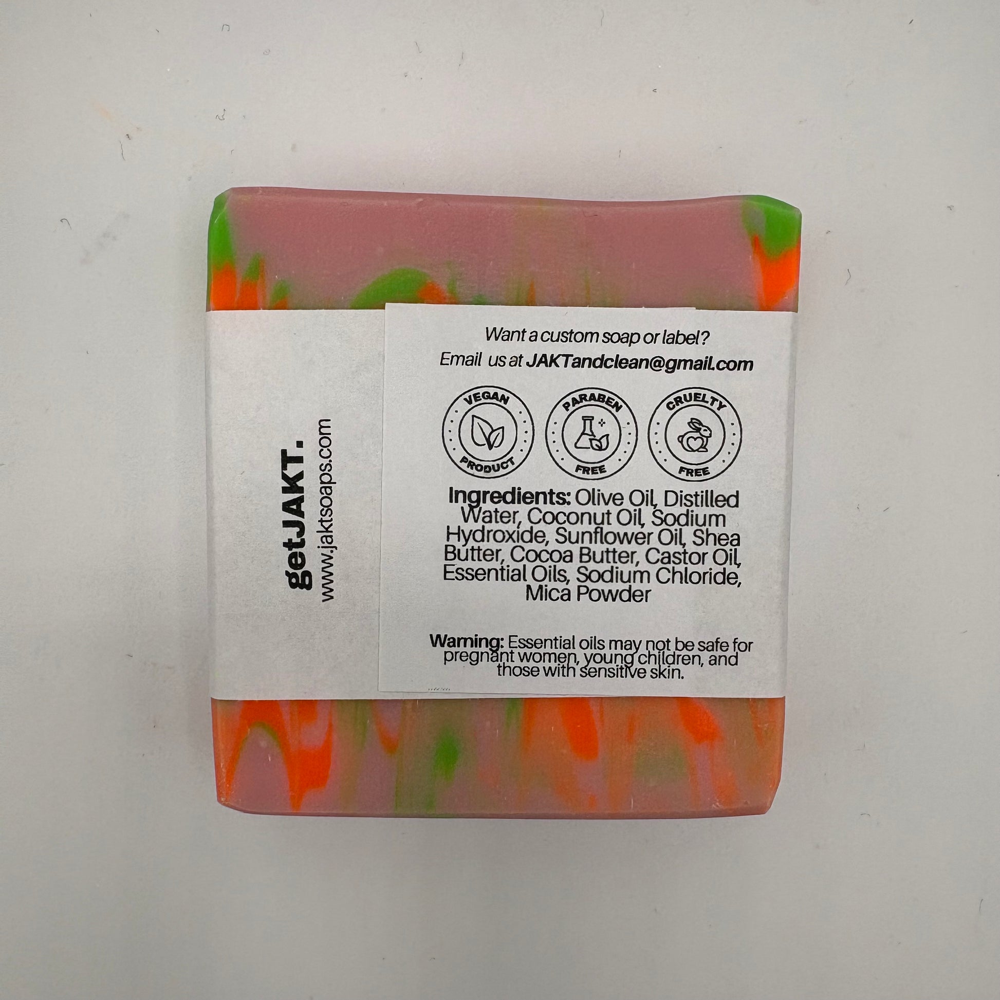 Ingredients: Olive Oil, Distilled Water, Coconut Oil, Sodium Hydroxide, Sunflower Oil, Shea Butter, Cocoa Butter, Castor Oil, Essential Oils, Sodium Chloride, Mica Powder.