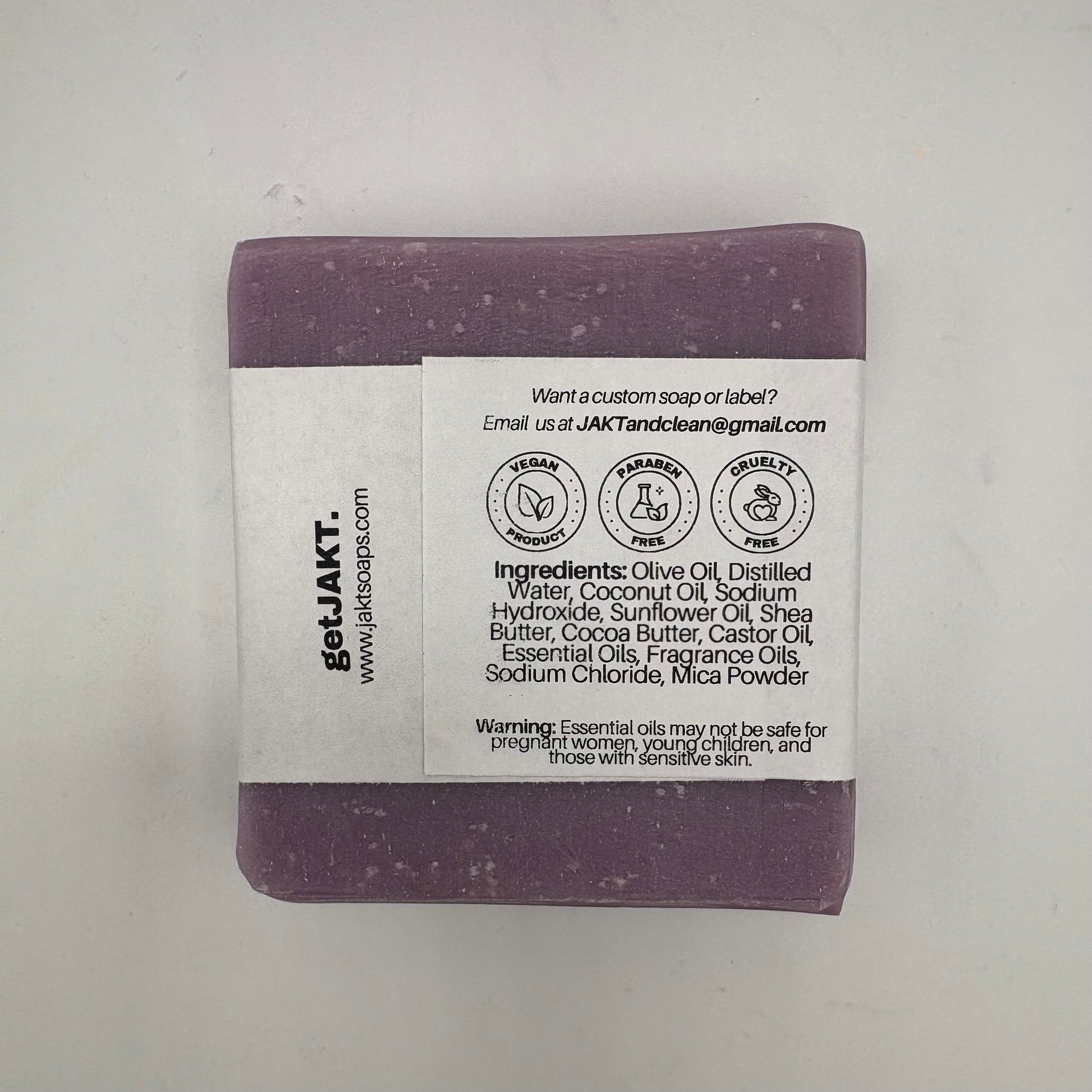 Ingredients: Olive Oil, Distilled Water, Coconut Oil, Sodium Hydroxide, Sunflower Oil, Shea Butter, Cocoa Butter, Castor Oil, Essential Oils, Fragrance Oils, Sodium Chloride, Mica Powder.