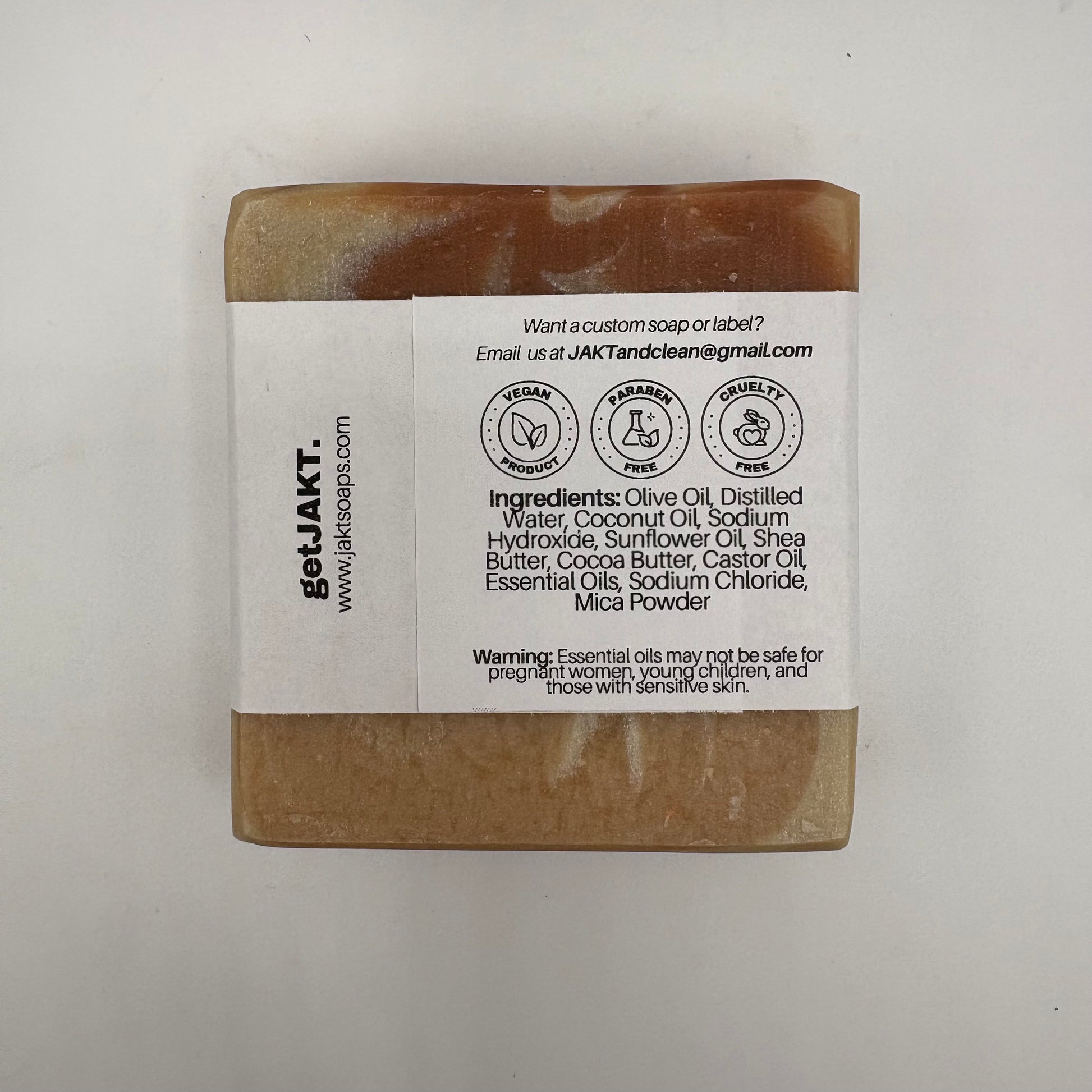 Ingredients: Olive Oil, Distilled Water, Coconut Oil, Sodium Hydroxide, Sunflower Oil, Shea Butter, Cocoa Butter, Castor Oil, Essential Oils, Sodium Chloride, Mica Powder.
