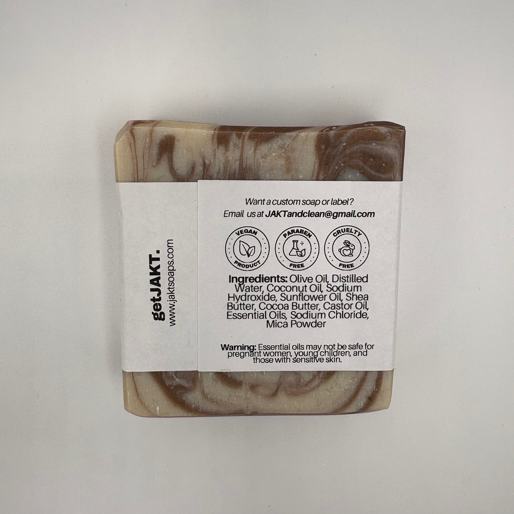 Ingredients: Olive Oil, Distilled Water, Coconut Oil, Sodium Hydroxide, Sunflower Oil, Shea Butter, Cocoa Butter, Castor Oil, Essential Oils, Sodium Chloride, Mica Powder.