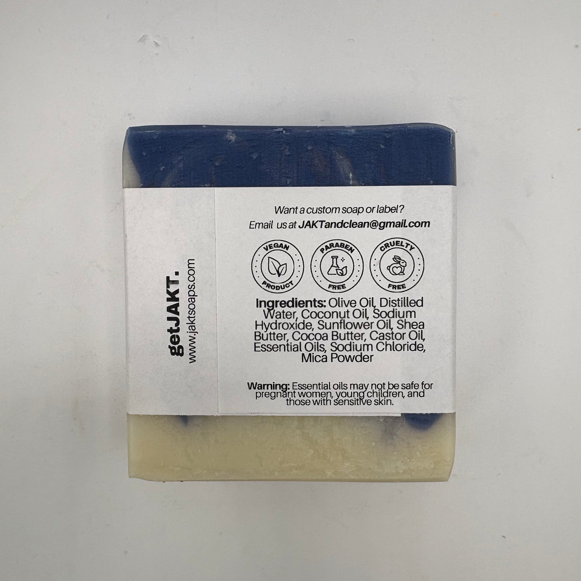 Ingredients: Olive Oil, Distilled Water, Coconut Oil, Sodium Hydroxide, Sunflower Oil, Shea Butter, Cocoa Butter, Castor Oil, Essential Oils, Sodium Chloride, Mica Powder.