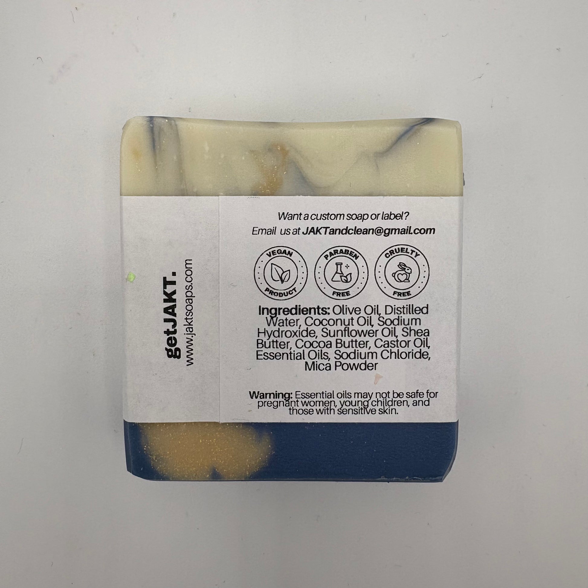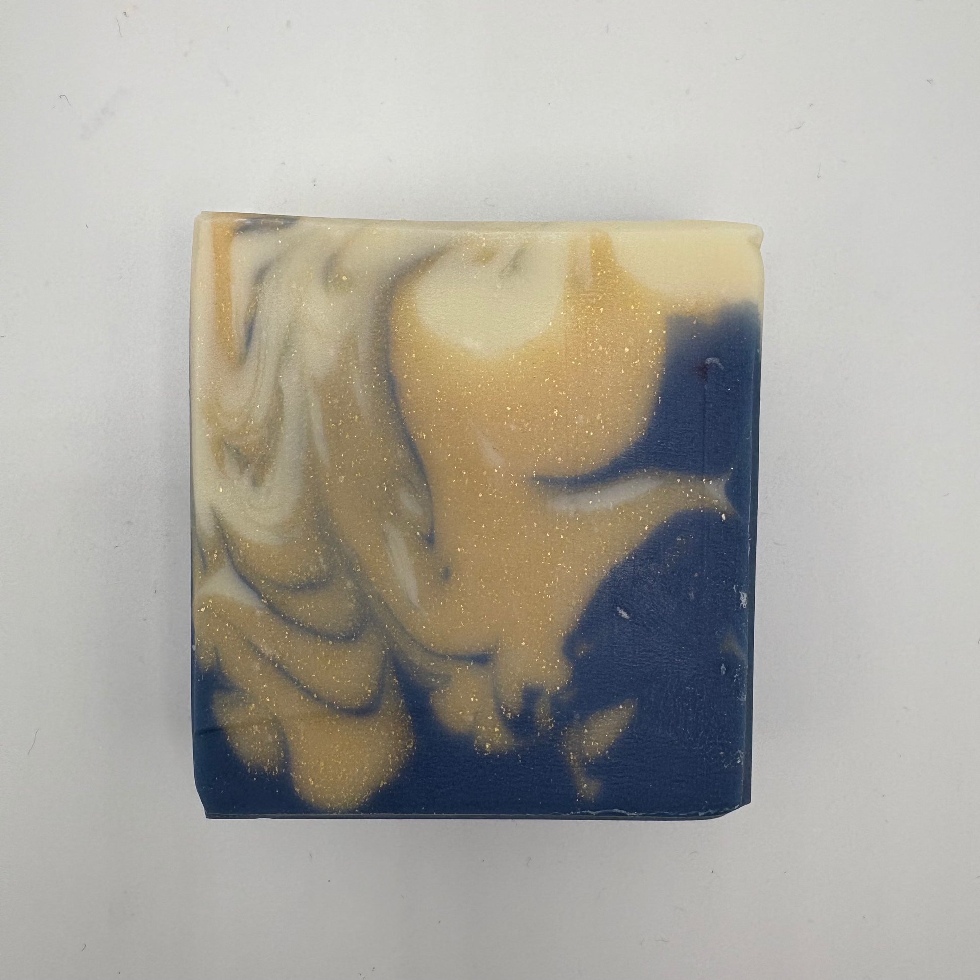 Ingredients: Olive Oil, Distilled Water, Coconut Oil, Sodium Hydroxide, Sunflower Oil, Shea Butter, Cocoa Butter, Castor Oil, Essential Oils, Sodium Chloride, Mica Powder.